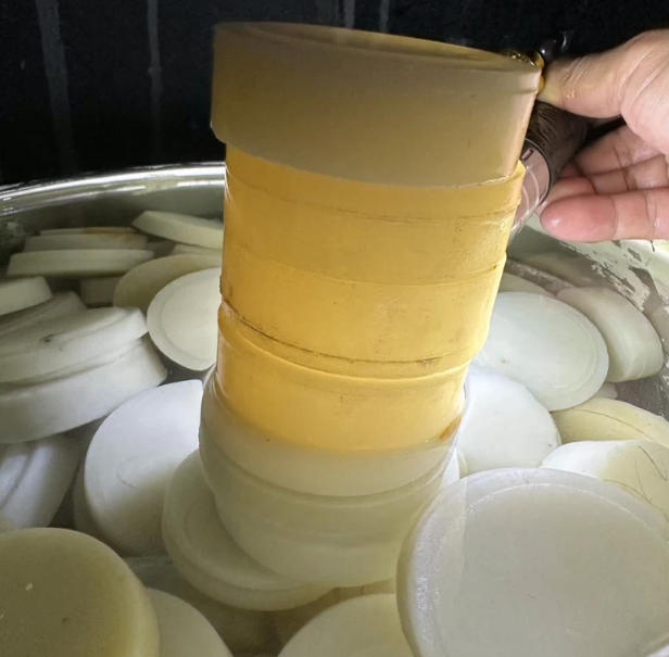 冰种黄龙玉手镯芯:优质雕刻原料,尽显玉质之美,高品质冰种黄龙玉手镯芯毛料,质地温润细腻,色泽纯净莹白,兼具羊脂白玉般的柔和质感与冰种玉石的通透光泽,玉质紧实无杂裂,是玉雕创作与手工制作的优质原料。